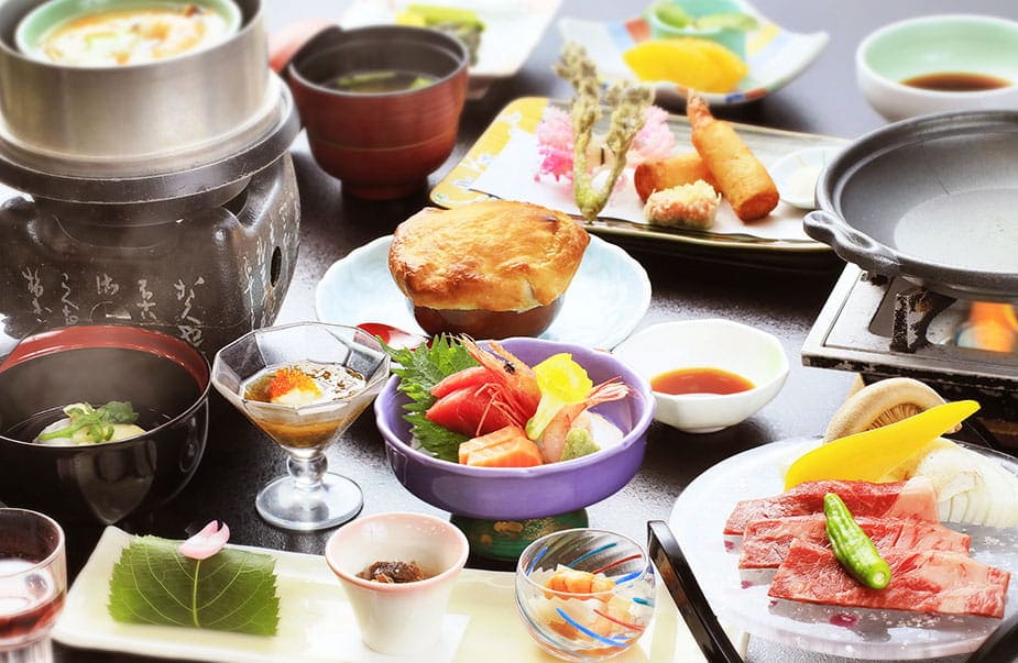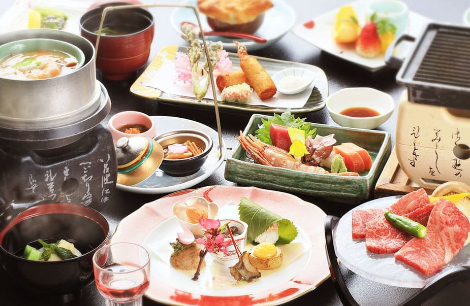 时令食材充足的阿智川酒店基本会席料理。